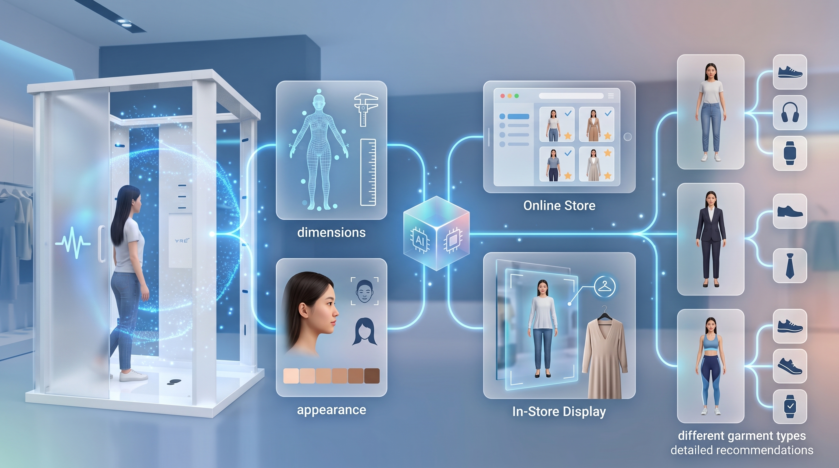 以尺寸、体型、姿态等〈身体内在〉信息,与外形、外观等视觉信息为两大核心轴,将各大领域的服务全面升级为“为您量身定制”。